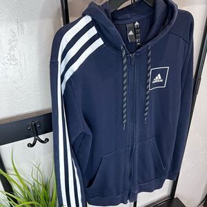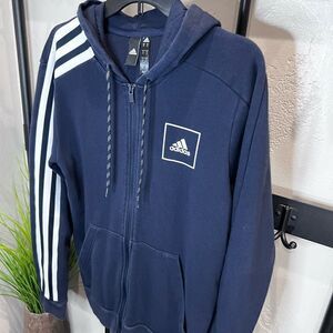 ADIDAS SPORTSWEAR Athletic Zip-Up Hoodie Navy size medium