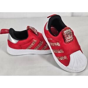Celebrate style and tradition with these Adidas Superstar 360 J 'Chinese New Year' sneakers! Designed with a bold red base and gold floral accents, these festive kicks pay homage to the holiday while offering all-day comfort. Featuring a slip-on design with stretch construction and cushioned sole, these sneakers provide an easy, snug fit for active kids.