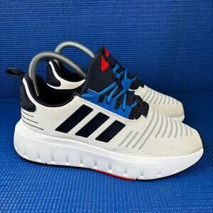 🔴 ADIDAS SWIFT RUN 23 Kids-Girls Size 4 White Blue Running Shoes E9993