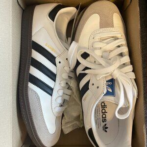 BRAND NEW! The Adidas Samba OG White (Size 6) is a timeless classic that blends vintage style with modern comfort. Featuring a premium white leather upper, contrasting black three stripes, and a gum rubber sole, these sneakers embody effortless versatility. Originally designed for indoor soccer, the Samba has become a global streetwear staple—perfect for everyday wear with jeans, trousers, or skirts alike.