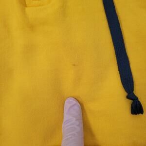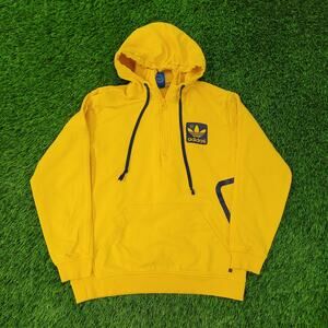 Adidas Street 1/4 zip hoodie in bold yellow with navy trefoil, 100% cotton, size S/M, relaxed fit. Retro sporty vibes!