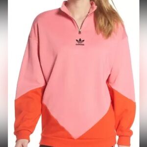 ADIDAS Sweatshirt Womens S Oversized Colorado Fleece Quarter Zip Pullover Pink