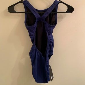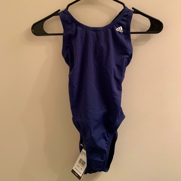 Adidas Swimsuit One piece Navy Blue Sporty Stretch Slim fit Sleek New w/ panty liner protector seal , Never worn