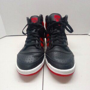 Stand out in these Adidas black & red high-top sneakers, size 8. Retro-inspired and perfect for streetwear or casual hoop looks, these kicks feature glossy red 3-stripes, padded ankle support, and that classic Adidas Originals energy.