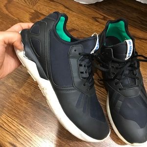 Used adidas tubular sneakers. Loved these but it's time to say goodbye! Know it has scratches so I'm selling for a very reasonable price. They are the perfect simple black sneakers that go with sporty and casual outfits. Great pair of sneakers and incredibly comfy too! Size: men's 6.5 which is a women's 8.5 :) MAKE OFFERS NOW!!