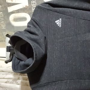 Cowl neck sweatshirt by Adidas, top has front pockets and reflective stripes on arms. Good condition!