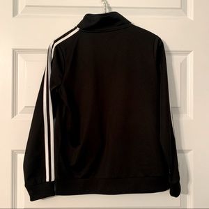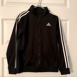 Black Adidas track jacket with white stripes. Kids size 10/12, which is roughly a women’s small. In excellent condition, worn only once or twice. Offers welcome!