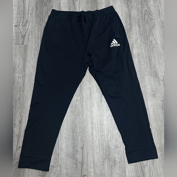 These Adidas track pants are from the Train Essentials product lines.
