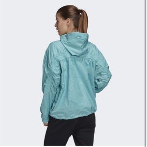 ADIDAS W.N.D. TURQUOISE BLUE WINDBREAKER WITH HOOD ZIPPER POCKETS SIZE MEDIUM