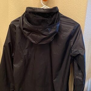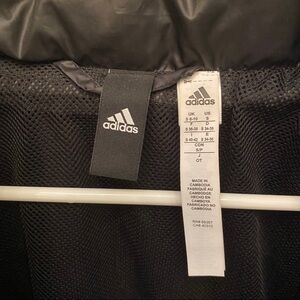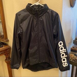 Pre-owned in great condition with no rips or stains. Nice black Adidas jacket with zipped hoodie. It’s a high-low hem. Comes from smoke and pet free home.
