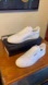 All white low profile Vulcs with a nice clean look great for everyday wear (even as trendy dress shoes?). Adidas trefoil logos on tongue, heel, and eyestay tabs. Regular fit, lace closure, reinforced canvas upper, white rubber Geoflex outsole. NWT comes in the original adidas box.