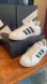 Classic adidas Grand Court sneakers in white with black 3-stripes, heel tab, and adidas logo on tongue and heel. Lace closure, synthetic leather upper, Cloudfoam Comfort sockliner, and rubber outsole. Comfortable as a cute every day shoe. NWT mint condition, comes in original adidas box.