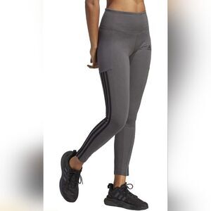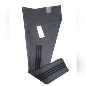 ADIDAS Women's High Rise 3-stripe 7/8 Cotton Tights HM2603 Grey Leggings Size S
