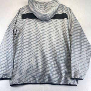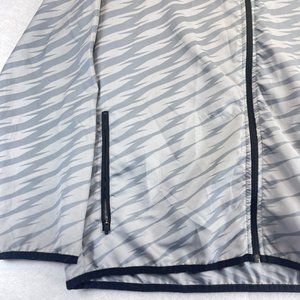 ADIDAS Womens XL Gray Striped Hooded Windbreaker Athletic Full Zip Pockets