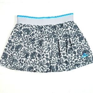 Floral print charcoal gray and white athletic skort with bright blue detail on elastic waistband. In excellent condition.