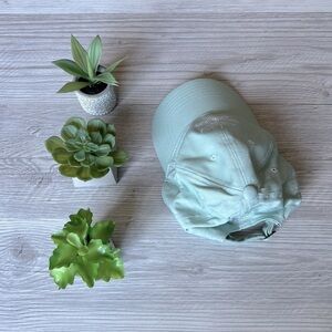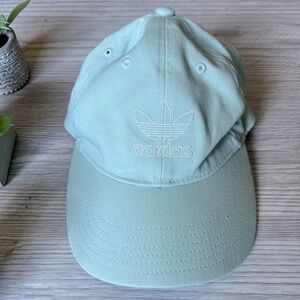 Adidas hat. Mint green. White stitching on front and back. Adjustable strap-back closure. Pre-curved brim. Womens one size.