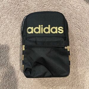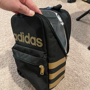 ADIDAS insulated and durable black with gold accent lunch bag,zipper closure front pocket and 1 mesh open pocket at the back. Perfect for kids school lunch bag. Never been used, brand new without tag. #adidas #lunchbag. Perfect gift for this holiday