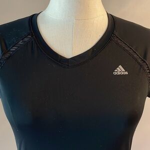 ADIDAS women’s CLIMALITE athletic top short sleeve V neck size Small BLACK