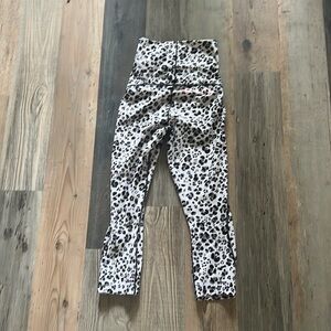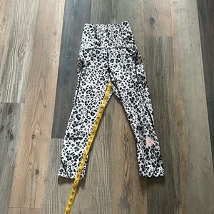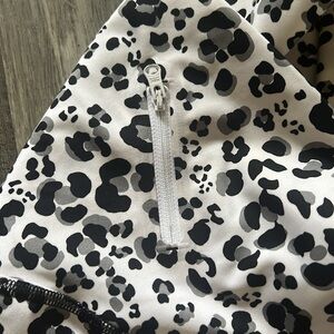 Great athletic leggings by famed designer, Stella McCartney for Adidas! In an edgy and lively animal print, these high-waisted leggings have great style! Wide waistband makes for a comfortable fit and the vibrant logo adds a sporty flair. Zip pocket on the right hip securely stores small essentials.