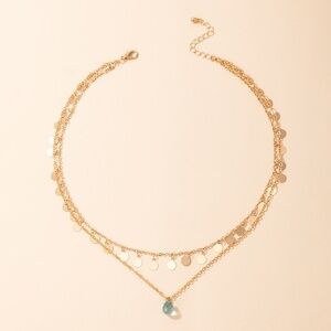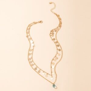 **ADILYNN* Gold Round Pendant Crystal Multilayered Fashion Necklace