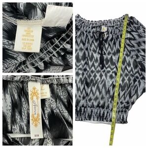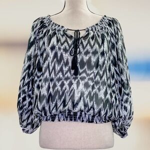 Adiva Aztec Printed Tassel Tie Peasant Blouse Women's Size Large