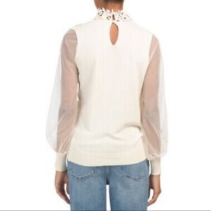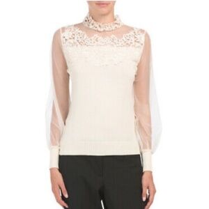 ADIVA New With Tags Romantic Embroidered Lace Top w/illusion sleeves Size Medium Embroidered lace, illusion sleeves, keyhole back with button closure long sleeve, mock neck Feminine Vintage Look Style