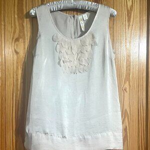ADIVA Satin Feel Sleeveless Top / Shell Ruffle 3D Floral Appliqué Accent Ivory