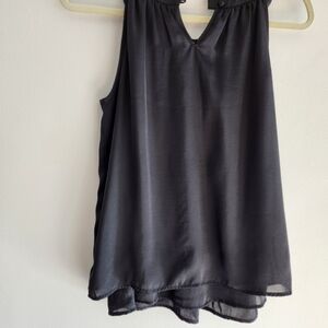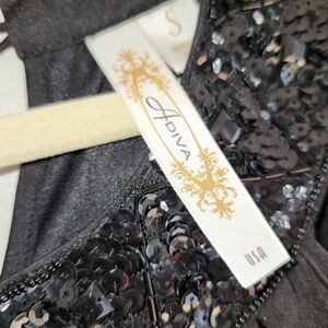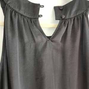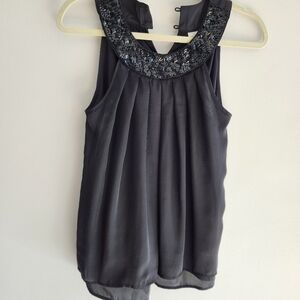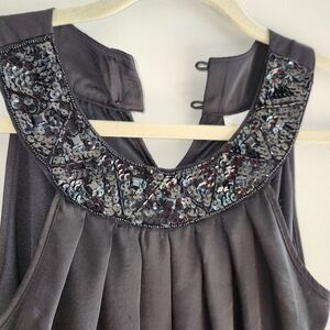 Chic black sleeveless lined top featuring a stunning sequine collar. Perfect for evening events. The lining has a ruffle around the bottom. mint condition!