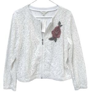 ADIVA White Lace Zip Jacket with Rose Appliqué Women’s Sz L NWT