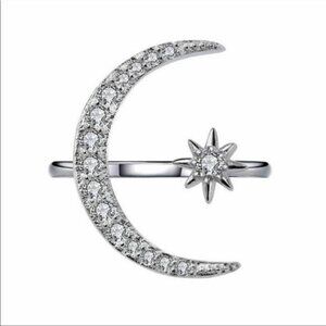 ADJUSTABLE 925 SILVER DIAMOND STAR MOON RING, CUTE RING, SHINY RING.