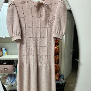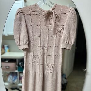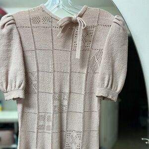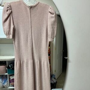 Vintage ADOLFO knit dress in light pale pink/tan shade, very light color, size not marked but fit close to small size, measurements are shown on pictures, there are couple