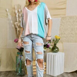 *This colorblock casual knit tunic top is a versatile and stylish piece for your everyday outfits. The colorblock design adds a modern and eye-catching touch to the top. Made from a comfortable knit fabric, this tunic top is perfect for all-day wear. Pair it with leggings or jeans for a casual and chic look. Stay on-trend with this fashionable colorblock casual knit tunic top.