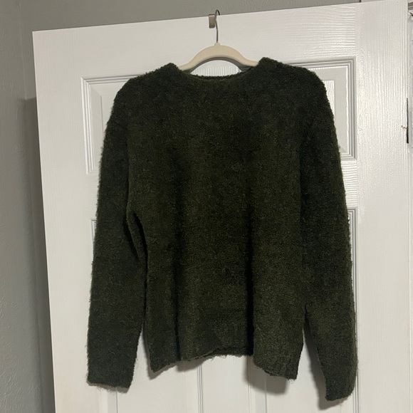 Soft and warm crew neck sweater. Just got as a holiday gift and really not my taste. Hoping I can pass it on to someone that will enjoy it more. Tags are still on, although the prices have been cut off for gift purposes. it’s listed as a small/medium and fits on the oversized side.