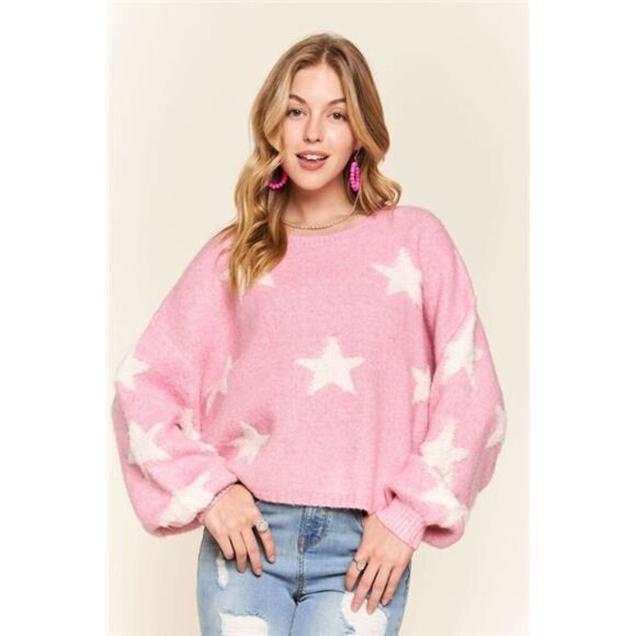 *A star contrast round neck sweater is a stylish and eye-catching piece that features star designs as a contrast on the sweater. This type of sweater typically has a round neckline, providing a classic and flattering look. The star contrast adds a fun and playful element to the sweater, making it a great option for expressing your unique style. You can pair this sweater with jeans or leggings for a casual yet chic outfit, or dress it up with a skirt for a more dressed-up look. The star contrast round neck sweater is versatile and can be worn for various occasions, adding a touch of personality to your wardrobe.
