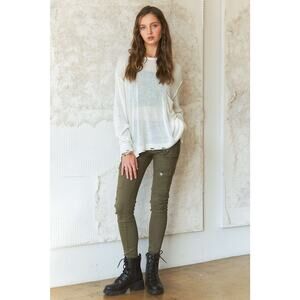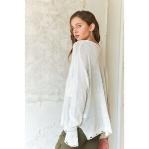 ADORA Vintage Edge Drop Shoulder Lightweight Loose Pullover Sweater | Off White