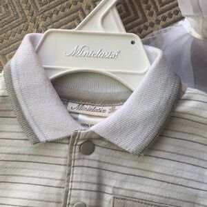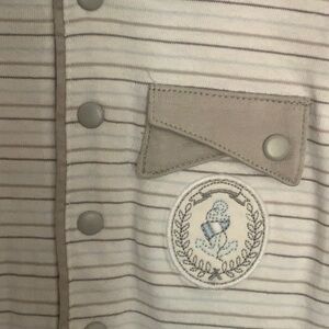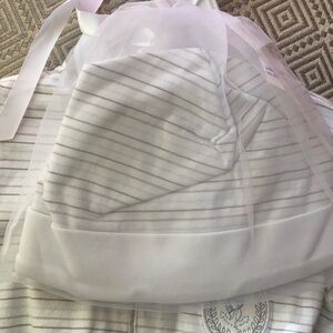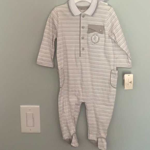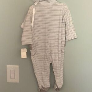 ADORABLE BABY BOY OUTFIT ONE PIECE W/ HAT SAXS WHITE/ w GRAY BLUE STRIPES NEW