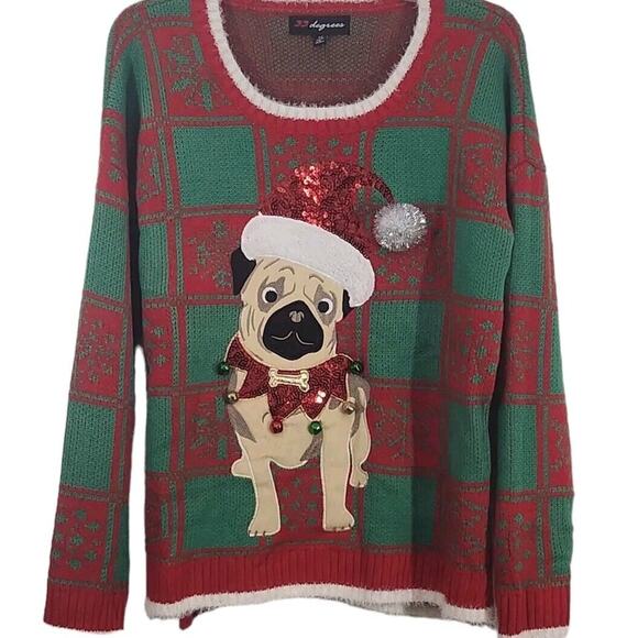 ADORABLE PUG UGLY CHRISTMAS SWEATER WOMEN XL DOG LOVER DUTCH BULLDOG
