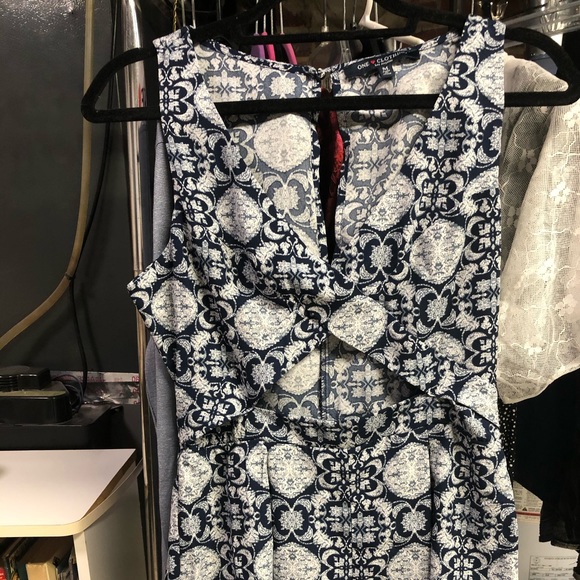 Very cute romper with a little peekaboo skin key hole in front. Super comfortable. Easy to dress up and fabric is awesome, wrinkle free.