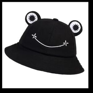 ADORABLE frog bucket hat I have pink and black one. Fits most all sizes.