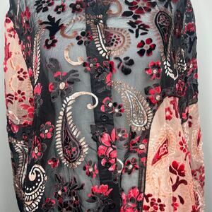 ADORE Crushed Velvet Burnout Paisley Tunic Top Size S Boho Artsy Sheer Lagenlook