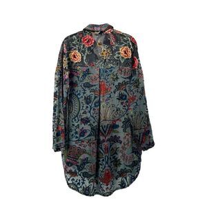ADORE burnt crushed velvet floral tunic top Size M boho artsy
