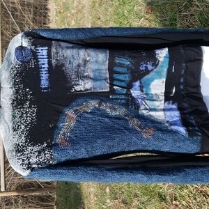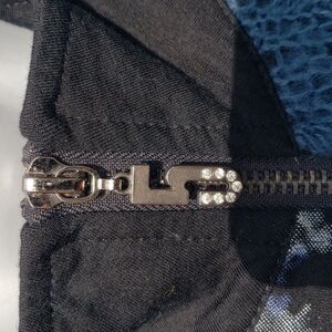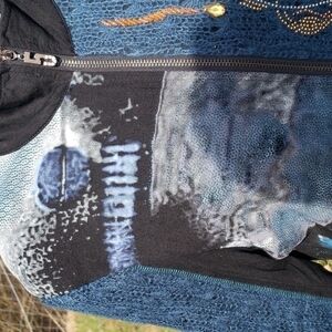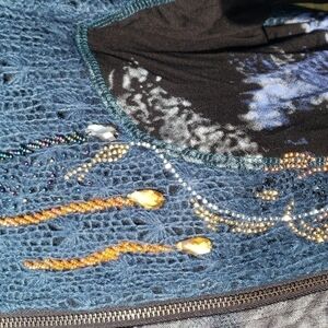 Adore women's size small zip front sweater. beaded embellishments on a blend of fabrics. beautiful addition to jeans or slacks. excellent condition