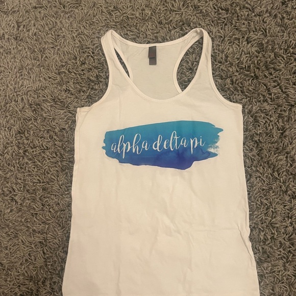 Stylish white tank top featuring a vibrant blue graphic. Perfect for casual outings.