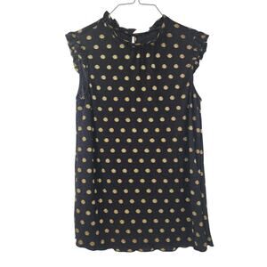 ADRIANA PAPELL Black and Gold Dot Crinkle Top Womens Size Small S