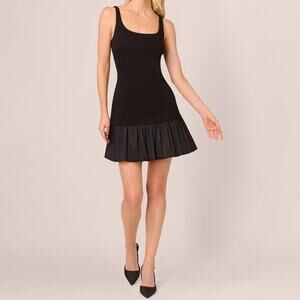 ADRIANNA BY ADRIANNA PAPELL Ponte Taffeta Drop Waist Flounce Dress Black Sz 12