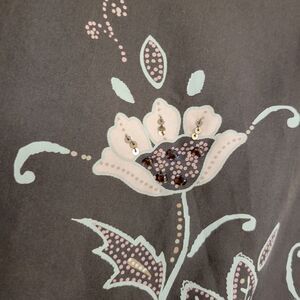 ADRIANNA Brown Peach Silk Floral Paisley Beaded Dress Y2K Fairy Event SIZE 10