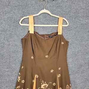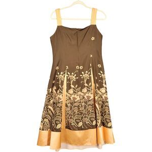 ADRIANNA PAPELL Brown Peach Silk Floral Paisley Beaded Dress Y2K Fairy Formal Event Cocktail SIZE 10