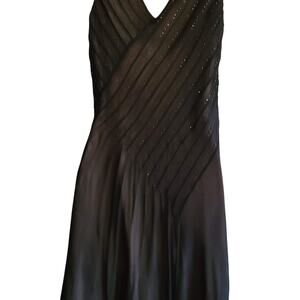 ADRIANNA PAPELL 100% Silk Beaded Midi Dress Asymmetric Hem Retro Style Women's 6