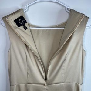 Cap sleeves, High back slit, Hidden back zipper, Lined, Care: Dry Clean, Embroidered Lace [100% Polyester] Mikado [97% Polyester, 3% Elastane] Lining [100% Polyester]