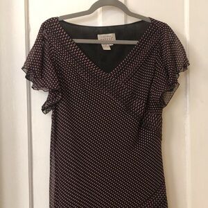 ADRIANNA PAPELL Asymmetric Hem Polka Dot V Neck Short Sleeve Midi Dress Size 12